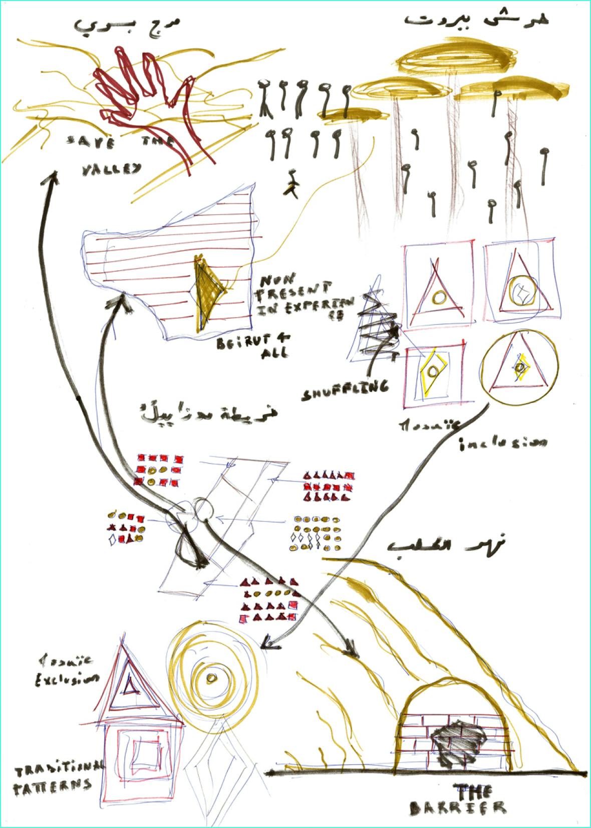 Written in Arabic is Horsh Beirut that refers to the largest public park in Beirut and pine forest. This public space has long been closed to the public and has been a site of constant urban activism to ensure that it is opened up for public use. To date Horsh Beirut remains a place where the struggle for the public to access this public park is ongoing.
